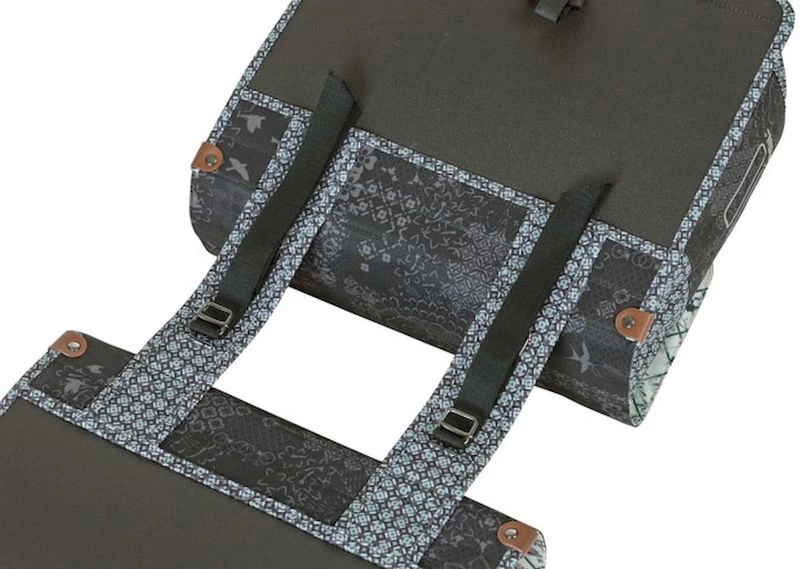 De Basil Bohème is geschikt voor verschillende fietsen en dankzij de meegeleverde riempjes gemakkelijk op iedere bagagedrager te bevestigen. De bovenkant van de fietstas bestaat uit twee banden, waardoor je altijd gemakkelijk bij je bagagedrager en snelbinders kunt. Handig! Zo plaats je zonder problemen een kinderzitje of ledverlichting.