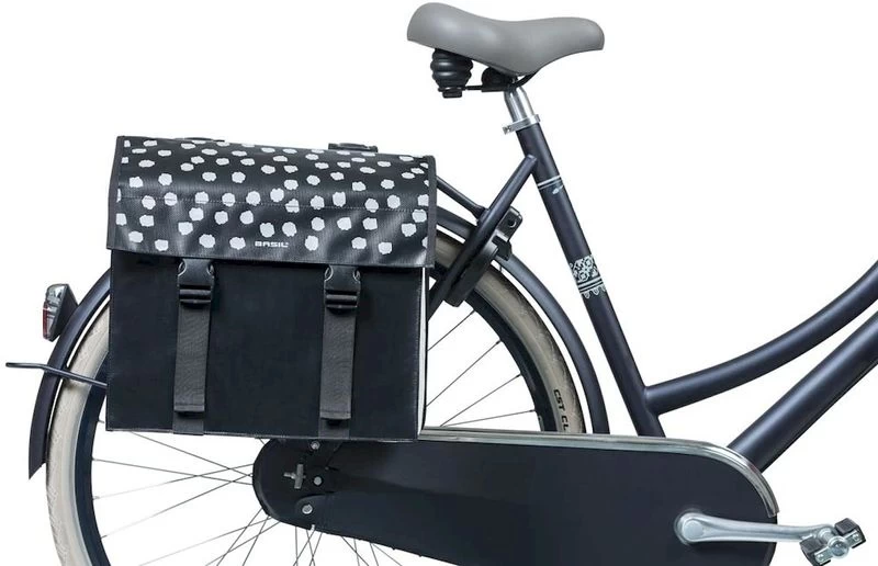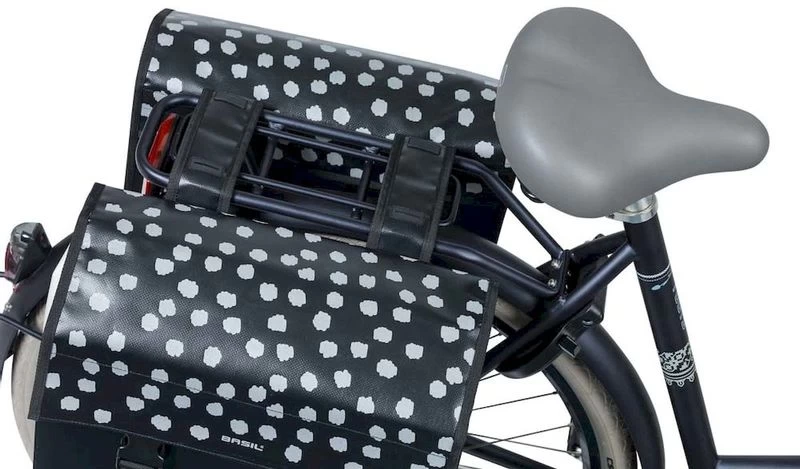 Basil Urban Load dubbele fietstas – 48-53 liter – Zwart met reflecterende stippen