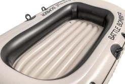 De Bestway Battle Bomber is gemaakt van duurzaam PVC en kan een maximaal gewicht van 120 kg aan. Ideaal voor één volwassene en één kind samen in de boot. De Battle Bomber heeft 3 luchtkamers. Als er een lekt raakt kom jij nog altijd aan de kant. Door de opblaasbare vloer zit jij extra comfortabel in de boot. Met het handvat en het grijpkoord dat om de Battle Bomber is bevestigd, is het gemakkelijk om vanaf het water weer naar binnen te klimmen.
