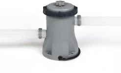 Dit zwembad wordt geleverd met filterpomp inclusief bijbehorende slangen en een filter. De filterpomp die wordt meegeleverd heeft een pompcapaciteit van 1.060 liter per uur. In ongeveer 3,5 uur heeft de pomp het zwembadwater volledig rondgepompt. Denk eraan om iedere twee weken de filter te vervangen. De filter cartridge die je nodig hebt voor de meegeleverde filterpomp is de Bestway Filter Cartridge – Type I.
