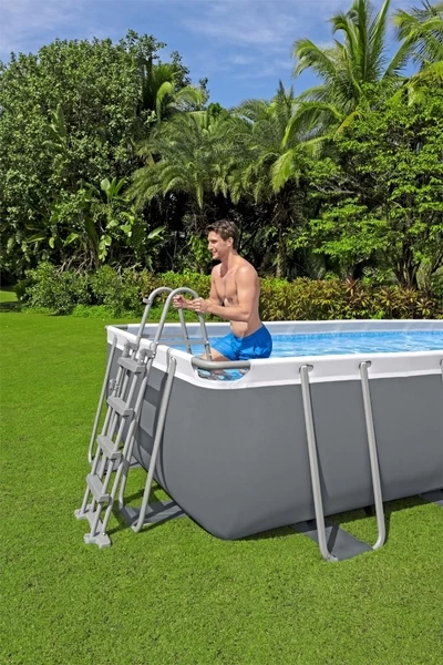 Het roestbestendige metalen frame van dit Bestway Power Steel Rectangular zwembad zorgt voor een stabiele basis dat golvend water in het zwembad met gemak opvangt . Bovendien is het frame uitgerust met het Seal & Lock System waardoor de stukken frame makkelijk aan elkaar te koppelen zijn en veilig en stevig aan elkaar vastzitten. De U-vormige steunen aan de zijkant van het zwembad zorgen voor nog meer stevigheid en stabiliteit.