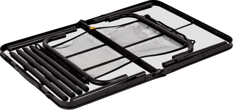 Onder dit blad bevindt zich een extra net om spullen in op te bergen. Hier berg je heel eenvoudig spullen in op, waardoor niets meer rond hoeft te slingeren op je campingplaats. Ruim jij jouw spullen liever ergens anders op en vind je het opbergnet overbodig? Je haalt hem eenvoudig onder de tafel vandaan. Met de Bo-Camp Industrial Koffermodel campingtafel geniet je comfortabel en in stijl van heerlijke maaltijden tijdens jouw vakantie!