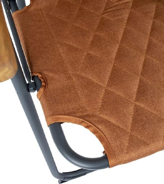 De stoel is uitgevoerd met een zwart aluminium frame en is voorzien van luxe Cationic bekleding. De houten armleggers, het zwarte frame en de luxe bekleding zorgen voor een stoer design in combinatie met ultiem comfort. De stoel weegt slechts 2,5 kg kan een maximaal gewicht van 110 kg aan.