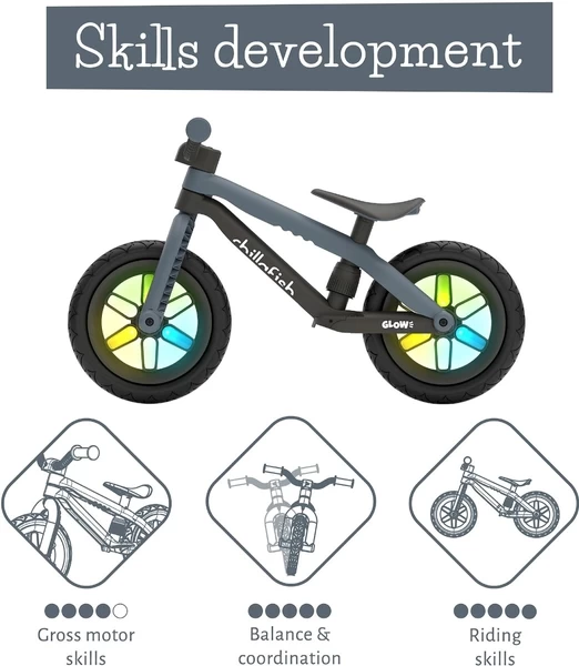 Verover elk terrein met de stoere Chillafish BMXie 2 loopfiets. Van modderige paden tot kronkelende bossen, met deze robuuste loopfiets gaan de kids verantwoord het avontuur aan. De BMXie 2 heeft extra grote wielen zonder lucht, een verstelbaar zadel, een voetensteun en is gemaakt van versterkt plastic. Deze BMXie Glow loopfiets ziet er nét even wat stijlvoller uit door de lichtjes in de wielen. Het nummerplaatje is afneembaar en met de stickers beplakken de kids ‘m helemaal naar eigen smaak.