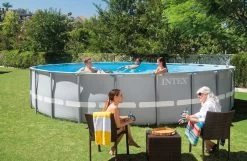 Door de diameter van 450 cm heeft dit zwembad een royale afmeting. Groot genoeg om lekker op je luchtbed rond te drijven, maar ook meer dan genoeg speelruimte voor kinderen om zich helemaal uit te leven. De diepte van 122 cm maakt bijvoorbeeld ook het opduiken van zwembadspeelgoed mogelijk. Of je nu alleen of met meerdere personen van alle zwemruimte profiteert, deze grote afmeting heeft zeker zijn voordelen.