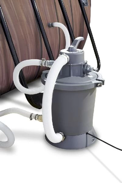 De meegeleverde zandfilterpomp zorgt voor een effectieve filtering van vuildeeltjes in het water. Dit watercirculatiesysteem pakt zelfs de kleinere deeltjes aan en is veel effectiever dan een filterpomp met cartridges. In het filtermateriaal blijft vuil zoals zand, algen en insecten achter. Zo weet je zeker dat een frisse duik in dit zwembad ook echt een frisse duik blijft. De zandfilterpomp heeft een capaciteit van 3028 liter per uur, waardoor de volledige inhoud in ongeveer 4 uur wordt rondgepompt. Deze zandfilterpomp wordt geleverd zonder het benodigde filterzand, vergeet dit niet bij je bestelling mee te bestellen. Voor deze zandfilterpomp heb je 10 kg filterzand nodig.