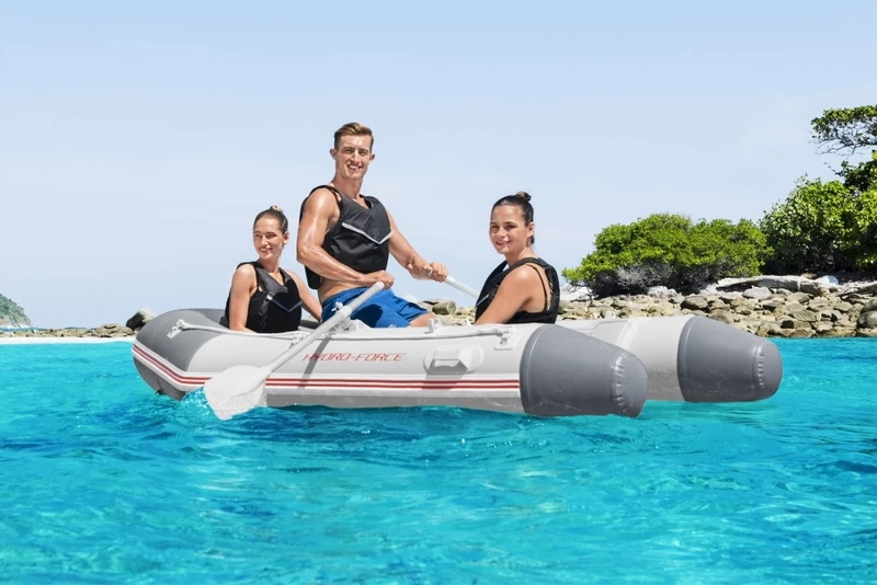 De Hydro Force Caspian Pro is geschikt voor drie volwassenen met een kind met een maximale belasting van 480 kilogram. Deze rubberboot is uitgerust met quick-fill/fast-deflate ventielen voor het eenvoudig en snel oppompen/opblazen. Verder heeft de boot een zitbank en een mulitplex bodem met opblaasbare kiel. Handvatten, riemsloten en riemhouders zijn uiteraard ook voorzien. De Hydro Force Caspian Pro 2023 weegt 47,4 kilogram.