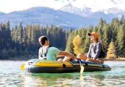 De Intex Challenger 2 is de perfecte opblaasbare boot om te gebruiken in het zwembad of op rustige meertjes. De Intex Challenger 2 opblaasboot is uitermate geschikt voor kinderen. Door de opvallende gele accenten kun je ze op ieder moment in de gaten houden. Omdat de Intex Challenger 2 drie luchtkamers heeft, kun je altijd veilig aan de kant komen, ook wanneer er een luchtkamer lek raakt. Om de veiligheid altijd te kunnen garanderen, is het aanbevolen een reddingsvest of zwemvest te dragen tijdens het varen met de Intex Challenger 2.