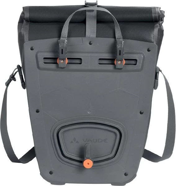 Dankzij de verstelbare wikkelsluiting verstel je de Vaude Aqua Back Plus fietstassen gemakkelijk in grootte en ze zijn volledig dicht af te sluiten. De Vaude Aqua Back Plus dubbele fietstas bevestig je met het QMR 2.0-systeem en de stabiele achterplaat eenvoudig rechts en links op de bagagedragers. Door de gemakkelijk te bedienen handwielen zijn de fietstassen verstelbaar en ook weer snel af te nemen. Appeltje eitje!