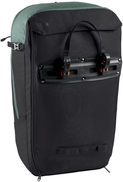 Na het fietsen bouw je de fietstas supereenvoudig om tot een rugzak. Met dank aan de verticale ritssluitingen open je het vak naar het bevestigingssysteem waar je deze vervolgens met klittenband in een afgesloten vak kunt opbergen. Zo zit je rugzak weer zoals die hoort te zitten, heerlijk comfortabel dus!
